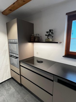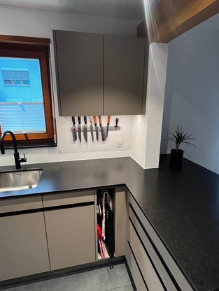 Zudem ergänzt die pflegeleichte Glasrückwand die weisse Wandfläche und trägt zu einer unkomplizierten Reinigung im Alltag bei.