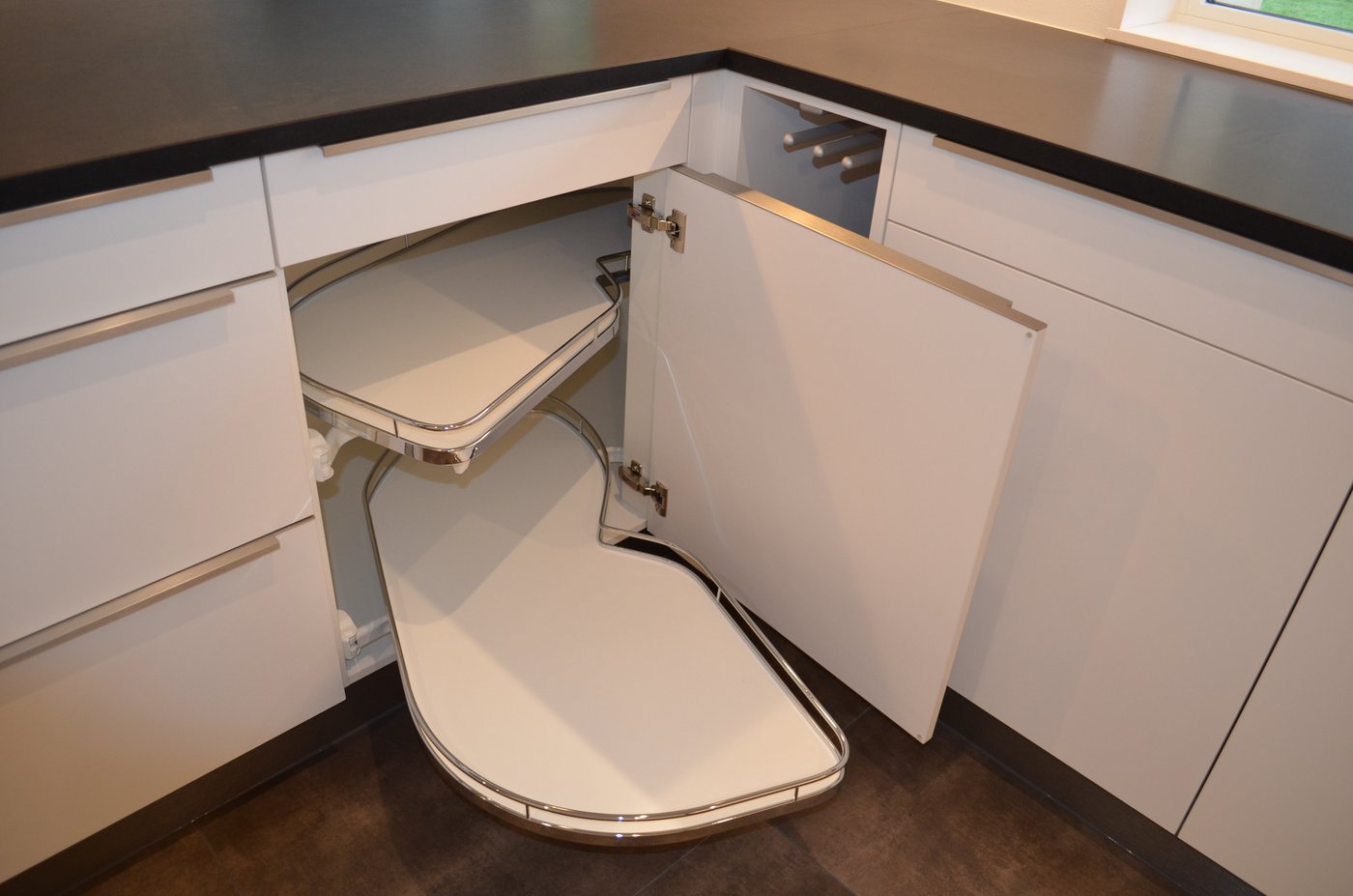 Damit die Ecke in der Küche sinnvoll genutzt werden kann, ist der LeMans die perfekte Lösung: Ein Eckschrankauszug, der sich optimal intergrieren lässt.