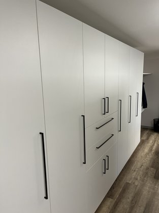 Küche, Schränke und Tisch sind massgeschneidert, harmonisch abgestimmt und überzeugen im täglichen Gebrauch auch optisch.