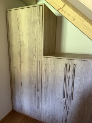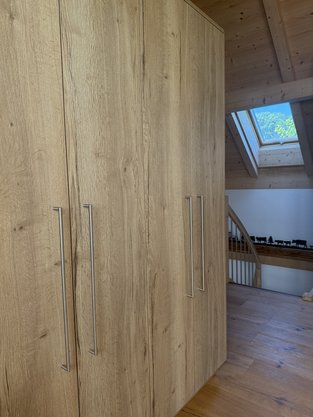 Eine optimale Strauraumlösung unter der Dachschräge ist wie hier, ein massgeschneiderter Schrank. Das neu geschaffene Platzangebot unter dem Dach wird häufig unterschätzt - dabei überzeugt es in der Praxis mit überraschend viel Stauraum.